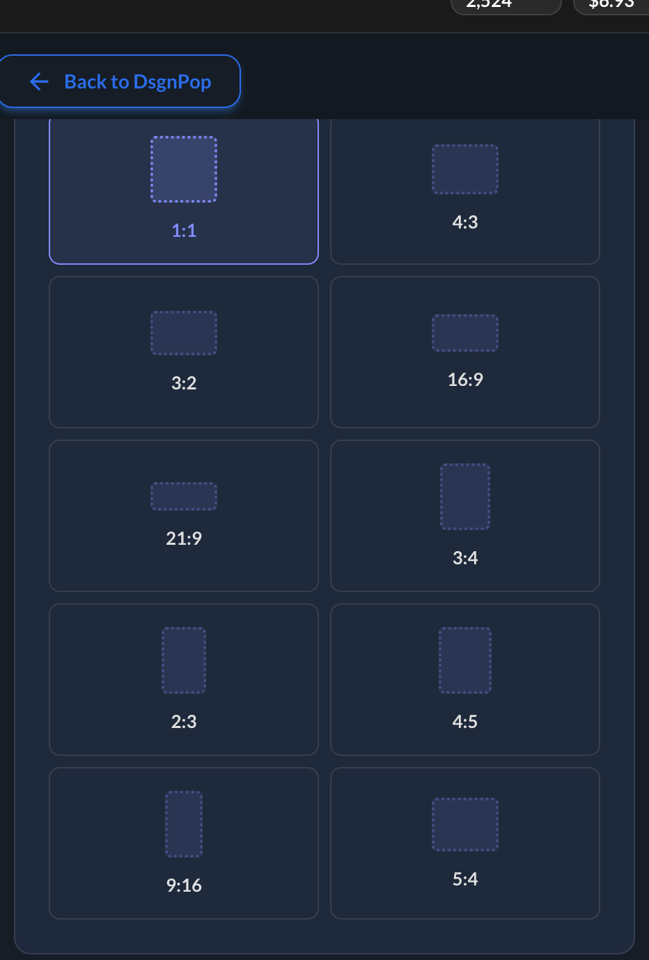 - 1:1 — great for Instagram, Etsy, wall art, square prints